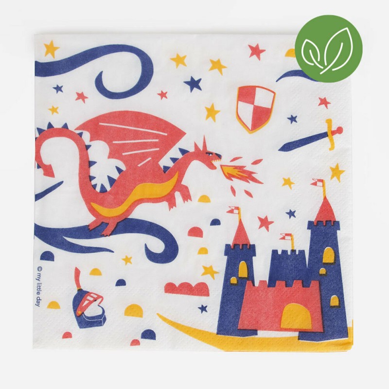 Ο γενναίος ιππότης δίνει μάχη με τον δράκο για την ασφάλεια του κάστρου του! Σε έντονες αποχρώσεις η σειρά του ιππότη θα δημιουργήσει σκηνικό γενναίων μαχών στο πάρτυ σου! 20 χαρτοπετσέτες σχεδιασμένες από την My Little Day, διακοσμημένες με ιππότες και κάστρα. Συνδυάστε