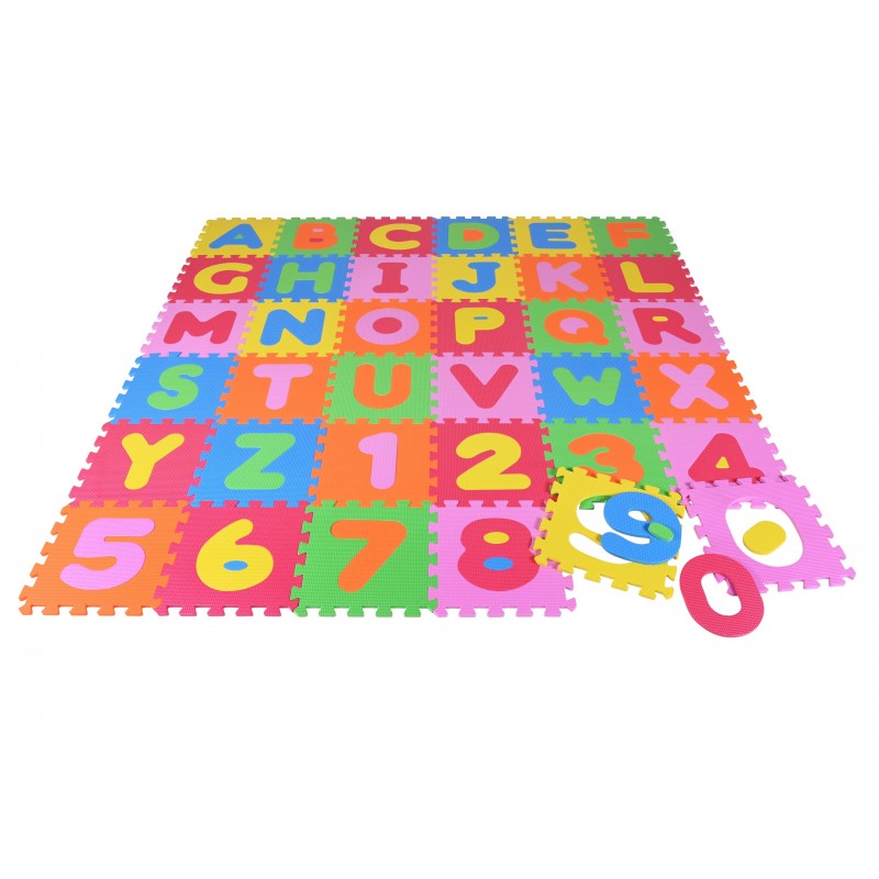 Με αυτά τα εξαιρετικά μαλακά χαλάκια παζλ, τα παιδιά μαθαίνουν να χειρίζονται αριθμούς και γράμματα με παιχνιδιάρικο τρόπο. Συγκεκριμένα, ενισχύονται οι κινητικές δεξιότητες, η αίσθηση της αφής και ο συντονισμός χεριού-ματιού. Οι αριθμοί και τα γράμματα μπορούν εύκολα να αφαιρεθούν από το χαλάκι.