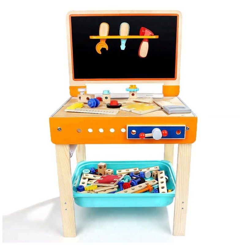 Αυτό το όμορφο γραφείο είναι εξοπλισμένο με άφθονα εργαλεία ώστε το παιδί να εξοικειωθεί με τη χρήση τους, όσο ταυτόχρονα διασκεδάζει. Περιλαμβάνονται απομιμήσεις εργαλείων, τραπέζι που γυρνάει και μετατρέπεται από γραφείο σε πάγκο εργασίας, μαυροπίνακας και ένα βολικό κουτί αποθήκευσης. Η χρήση των εργαλείων αυξάνει τις χειρονακτικές ικανότητες των παιδιών, τη φαντασία τους και τη δημιουργικότητά τους.