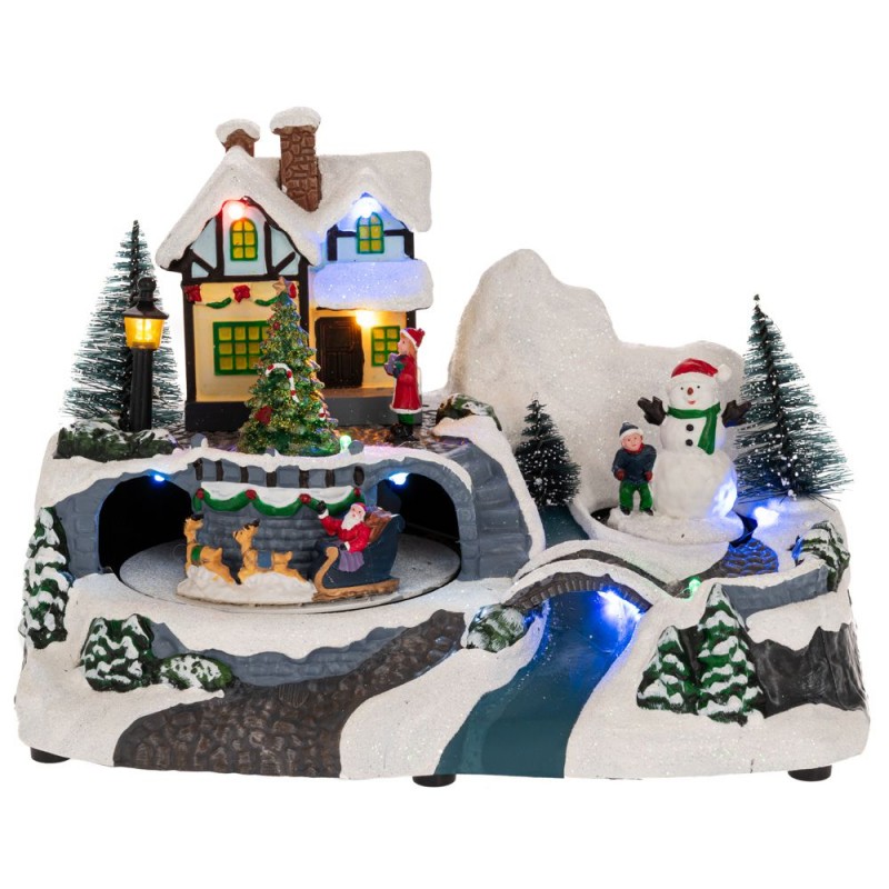 Χριστουγεννιάτικο Φωτιζόμενο Χωριό με Άγιο Βασίλη που Κινείται με Μπαταρία (90742)