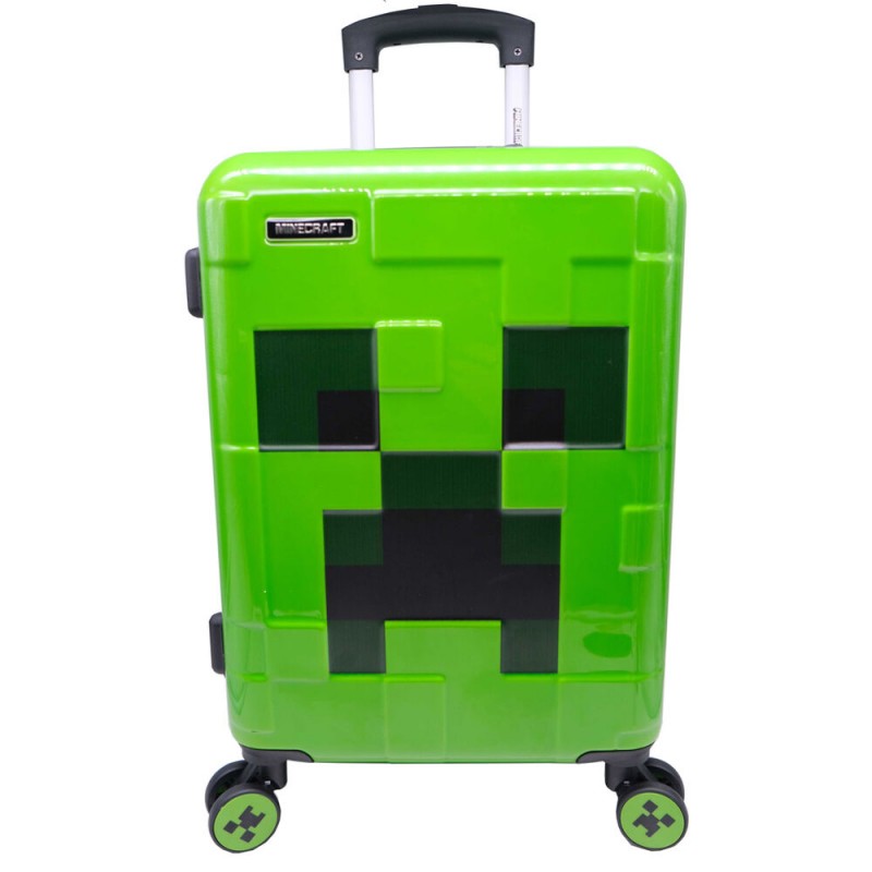 Βαλίτσα ταξιδίου με θέμα Minecraft. Διαθέτει κλειδαριά ασφαλείας με λουκέτο και εσωτερική επένδυση με δικτυωτή τσέπη με φερμουάρ. Το εσωτερικό διαχωριστικό χωρίζει τις δυο πλευρές της βαλίτσας. Ελαστικοί ιμάντες διατηρούν τα ρούχα στη θέση τους ενώ η εύκαμπτη λαβή από PVC κάνει τη μεταφορά της πανεύκολη. Οι 4 τροχοί είναι διπλοί και περιστρεφόμενοι κατά 360º για απόλυτη ευελιξία. Η λαβή διαθέτει κουμπί που επιτρέπει να σταθεί σε 2 διαφορετικά ύψη. Διαστάσεις : 55 x 40 x 20 εκ.