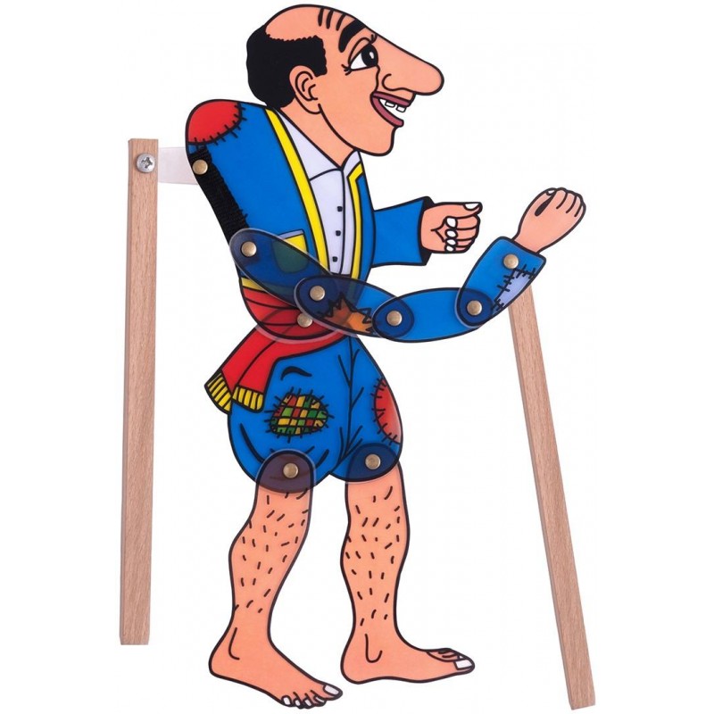 Φιγούρα Καραγκίοζης με ξύλινες χειρολαβές προσαρτημένες και έτοιμες για παιχνίδι και μεταλλικά κουμπώματα για συνδέσμους. Κατασκευάζεται από μαλακό πλαστικό, ελαφρύ και φιλικό για τα παιδιά ενώ είναι βαμμένη με οικολογικά χρώματα. Διαθέτει ξύλινη χειρολαβή ύψους 20εκ. που ανοιγοκλείνει για εύκολη μεταφορά και αποθήκευση. Μπείτε στον κόσμο του παραδοσιακού θεάτρου σκιών με απίθανες φιγούρες σε διάφορους χαρακτήρες για να αναπαραστήσετε τις ιστορίες του Καραγκιόζη. Οι φιγούρες είναι χειροποίητες και κατασκευάζονται στην Ελλάδα.