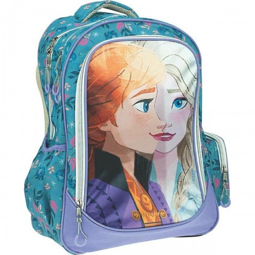 Τρόλεϊ σχολικό Frozen με ανατομική και ενισχυμένη πλάτη, δύο κεντρικές θέσεις και δύο πλαϊνές για παγούρι, ενισχυμένο διπλό μηχανισμό μεταφοράς ρυθμιζόμενος με 2 θέσεις προσαρμογής και εργονομικούς ρυθμιζόμενους ιμάντες.