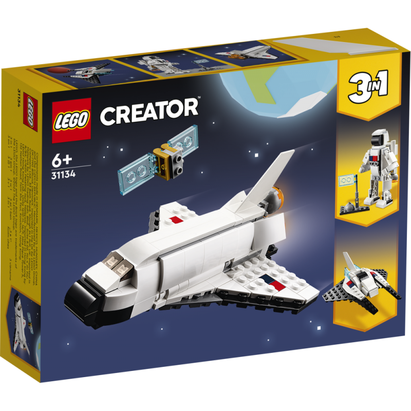 LEGO Creator 3in1 Space Shuttl (31134). Απόλαυσε εκπληκτικές διαγαλαξιακές περιπέτειες με 3 διαφορετικά διαστημικά παιχνίδια LEGO® σε 1 σετ παιχνιδιού. Μπες σε τροχιά με το Space Shuttl και τον εκτεινόμενο δορυφόρο του. Αργότερα, ανακατασκεύασέ το σε έναν αστροναύτη με αρθρωτά χέρια και πόδια – έτοιμο να κατακτήσει πλανήτες – ή ανακατασκεύασέ το ξανά σε ένα σούπερ κουλ διαστημόπλοιο με κινούμενα φτερά.