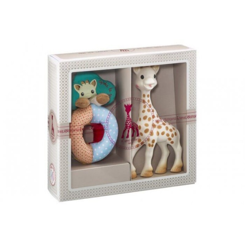 Αυτό το πανέμορφο σετ δώρου περιλαμβάνει την αγαπημένη μας Σόφι φτιαγμένη από 100% φυσικό καουτσούκ, το πιο διάσημο παιχνίδι στον κόσμο που διεγείρει όλες τις αισθήσεις του μωρού και μια μαλακή κουδουνίστρα με χάντρες για να διασκεδάζει το μωρό. Τα φωτεινά χρώματα και σχέδια τραβάνε την προσοχή του ενώ οι διαφορετικές υφές και τα πολύχρωμα μπαλάκια δίνει στο μωρό την αίσθηση της ανακάλυψης και της εξερεύνησης. Αποτελεί την ιδανική πρώτη κουδουνίστρα για εκείνο επειδή είναι ελαφρύ και εύκολα για να μπορούν τα χεράκια του να το χειριστούν. Έρχεται σε ένα πανέμορφο κουτί δώρου για να δώσει μια σύγχρονη, μοντέρνα και εκλεπτυσμένη εμφάνιση και περιλαμβάνει μια τσάντα και μια κάρτα δώρου για να γράψετε τη δική σας ευχή.