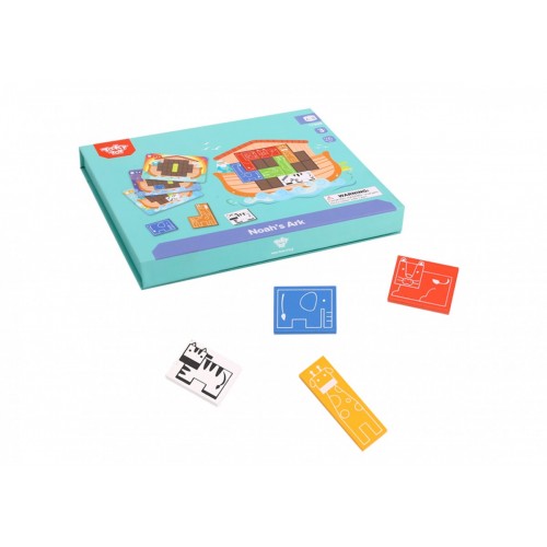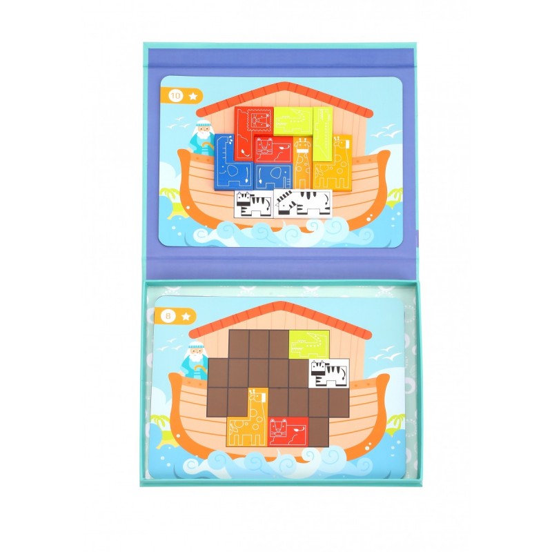 Αυτό το παιχνίδι είναι ένα πρωτότυπο, πολύχρωμο και διαφορετικό είδος τέτρις που παράλληλα μαθαίνει στο παιδί την ιστορία του Νώε. Πιο συγκεκριμένα, περιέχει 10 μαγνητικά κομμάτια, 15 διαφορετικές εικόνες διπλής όψης διαβαθμισμένης δυσκολίας (3 επίπεδα) κι ένα βιβλιαράκι με οδηγίες στα αγγλικά. Το παιδί επιλέγει μια εικόνα και προσπαθεί να σχηματίσει σωστά το μοτίβο που απεικονίζεται σε αυτήν.