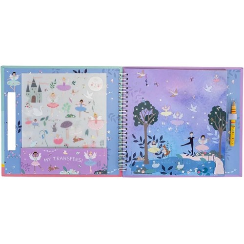 Αυτό το δημιουργικό σετ περιλαμβάνει φύλλα αυτοκόλλητων που περιέχουν πάνω από 150 υπέροχα γραφικά με μοτίβα από κορίτσια μπαλέτου, 6 φύλλα με χρωματιστά φόντα για διακόσμηση, 6 κενές σελίδες για ελεύθερη ζωγραφική και ένα μολύβι. Η τέχνη των αυτοκόλλητων είναι απίστευτα δημιουργική και εύκολη διασκέδαση για κάθε μικρό! Απλώς εφαρμόστε το φύλλο αυτοκόλλητου σε ένα από τα φύλλα φόντου και σκιαγραφήστε τα γραφικά με ένα μολύβι, στη συνέχεια ανασηκώστε το φύλλο. Με τα γραφικά να αντανακλώνται στο χαρτί, μπορείτε να δημιουργήσετε τις δικές σας φανταστικές ιστορίες με μπαλαρίνες, χορευτές, αξιολάτρευτα ζώα του δάσους και πολλά άλλα.