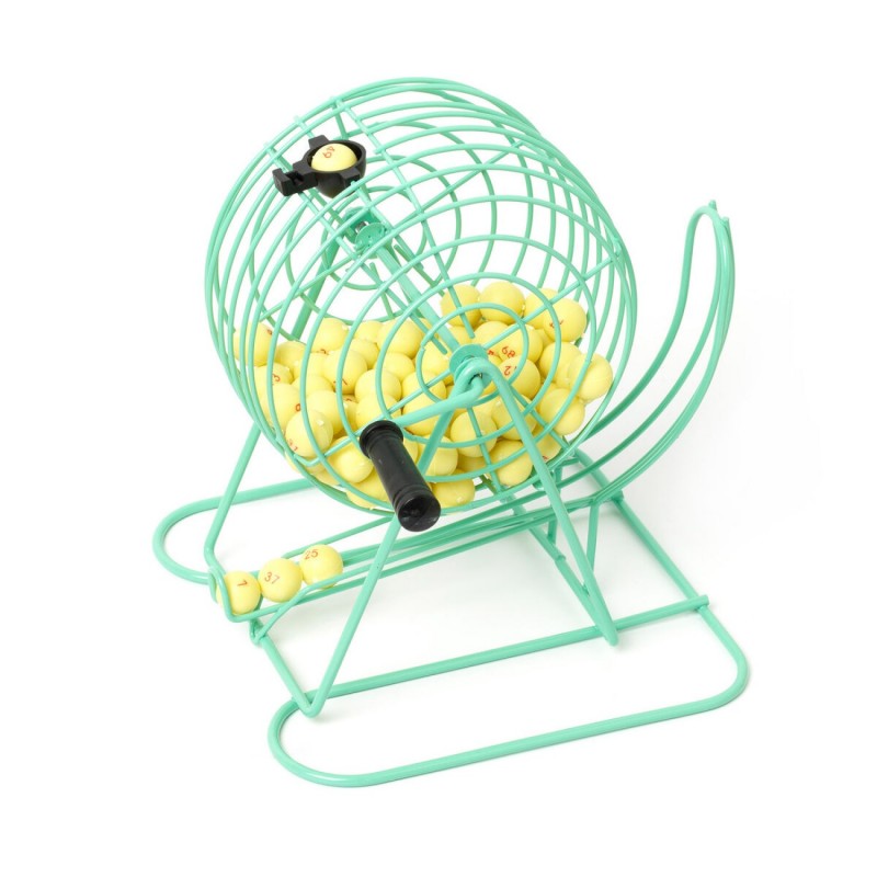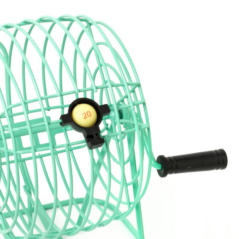Περιεχόμενα: 1 μεταλλικό περιστροφικό κλουβί με αυτόματο συλλέκτη σφαιρών, 90 αριθμημένες μπάλες, 1 πίνακας προβολής, 60 επαναχρησιμοποιούμενες κάρτες, 300 μετρητές μαρκαδόρων, 2 υφασμάτινες θήκες.