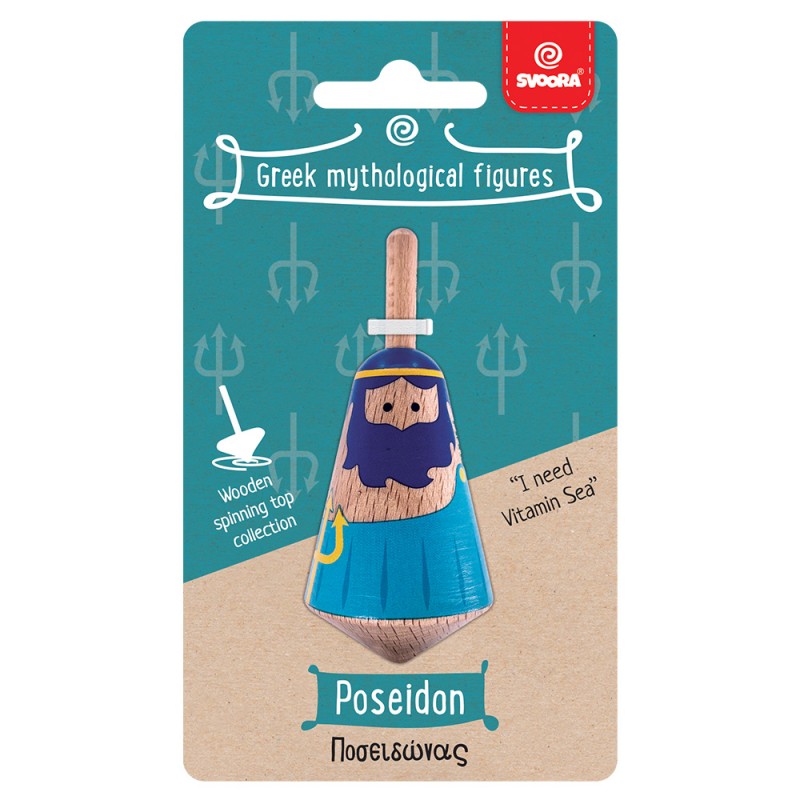 Ξύλινη Συλλεκτική Σβούρα 'Ποσειδώνας' από τη σειρά της εταιρείας Svoora 'Ελληνικές Μυθολογικές Φιγούρες'. Ένα ανθεκτικό προϊόν ανώτερου σχεδιασμού που σκοπός του είναι η συμφιλίωση όλων των ηλικιών με τη διαδικασία της περιστροφής. Η κάθε φιγούρα είναι κατασκευασμένη από επιλεγμένο ξύλο οξιάς, με προσεγμένα υλικά και χρώματα υψηλής ποιότητας και αισθητικής. Ένα πολύ ιδιαίτερο και ξεχωριστό αναμνηστικό δώρο – σουβενίρ για διακόσμηση. Συμβατό με όλες τις σχετικές πιστοποιήσεις ασφαλείας για χρήση από παιδιά και εναρμονισμένο με την ΕΝ71 οδηγία της ΕΕ. Διαθέσιμο σε 6 σχέδια: Δίας, Αφροδίτη, Ποσειδώνας, Διόνυσος, Άρης και Ηρακλής. Κατάλληλο για παιδιά άνω των 6 ετών.
