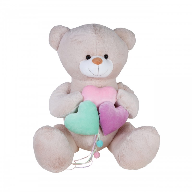 Αρκουδάκι λούτρινο 70 εκατοστά, πολύ μαλακό, σε χρώμα μπεζ με καρδιές τρίχρωμες ! Γλυκό και πρωτότυπο δώρο!