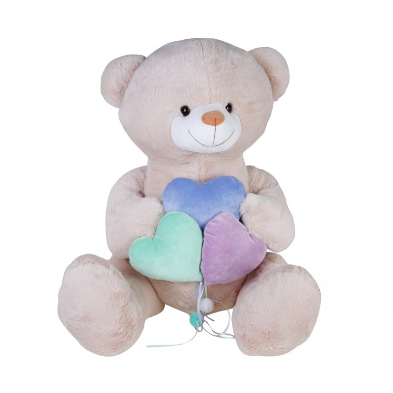 Αρκουδάκι λούτρινο 70 εκατοστά, πολύ μαλακό, σε χρώμα μπεζ με καρδιές τρίχρωμες ! Γλυκό και πρωτότυπο δώρο!