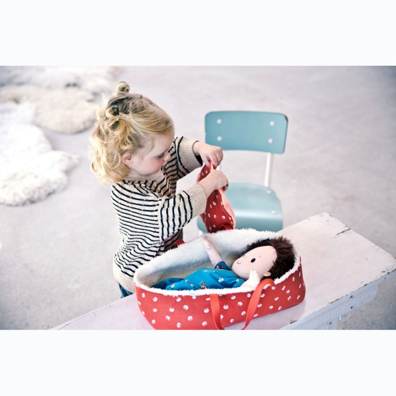 Το μωρό σου νυστάζει και θέλεις να το βάλεις για ύπνο? Έχεις ένα όμορφο πορτμπεμπέ να βάλεις μέσα την κούκλα σου! Η υφασμάτινη καλαθούνα με μαξιλάρι και κουβέρτα θα σε βοηθήσει σε αυτό και να την έχεις πάντα μαζί σου!