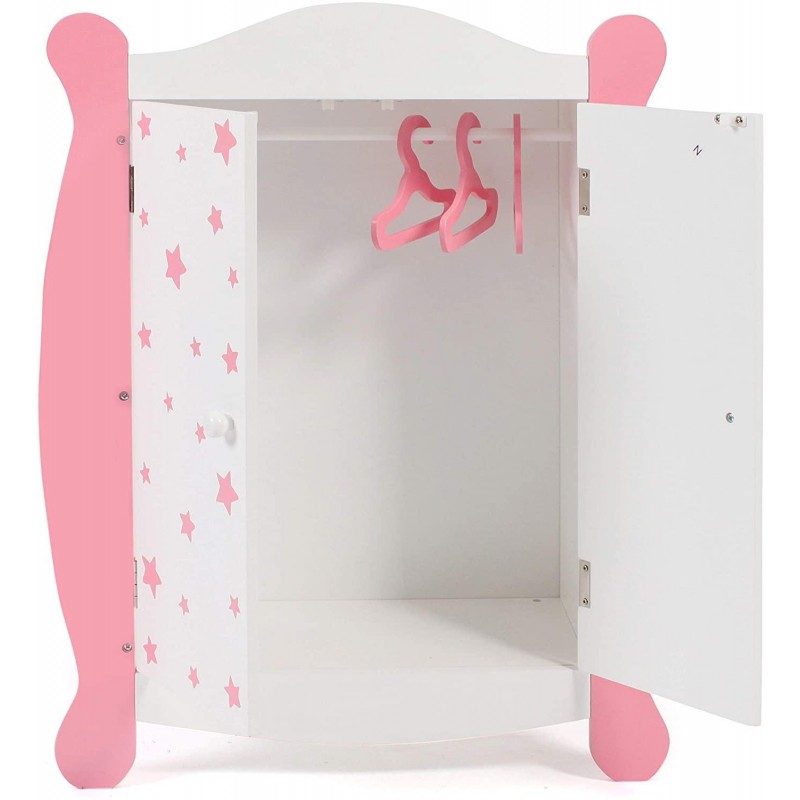 Ξύλινη ντουλάπα Pink Stars από την Chic Bayer. Αποθήκευσε μέσα στην απίθανη ντουλάπα όλη την προίκα του μωρού σου για να είναι πάντα τακτοποιημένα τα ρούχα του. Περιλαμβάνει 3 κρεμάστρες.