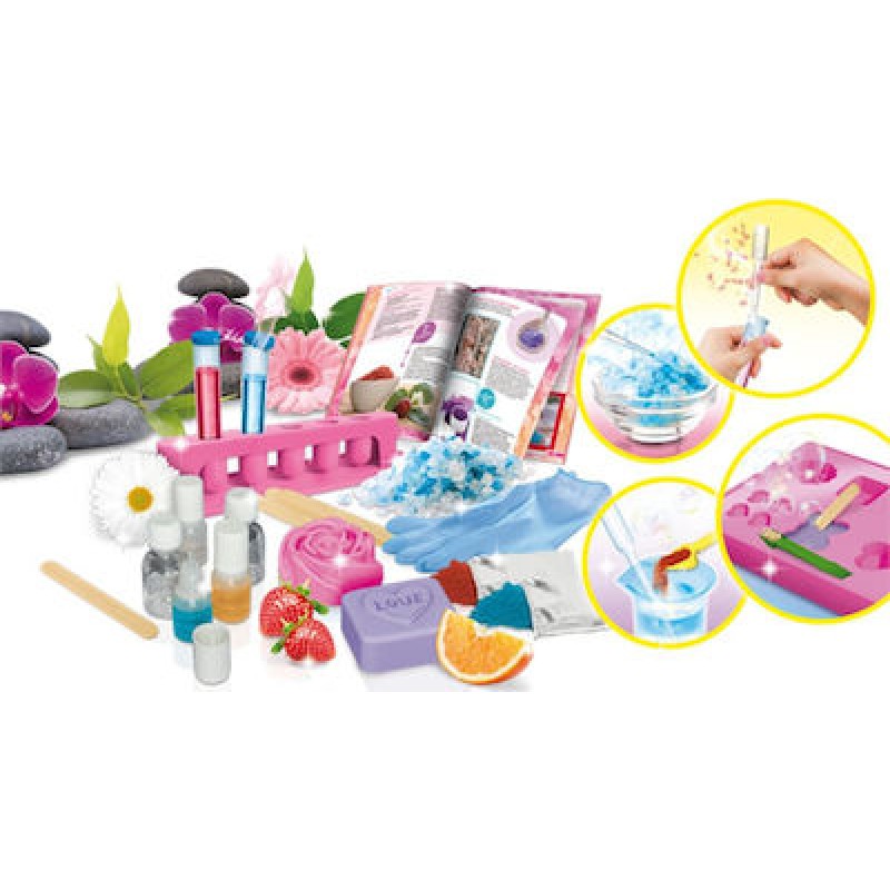 Σούπερ εργαστήριο για τη δημιουργία πολύχρωμων αλάτων μπάνιου, σαπουνιών πολλών σχημάτων, σαμπουάν και πρωτότυπων αρωμάτων, με ασφάλεια!Το εικονογραφημένο βιβλίο οδηγιών θα σου εξηγήσει βήμα-βήμα, πως να πραγματοποιήσεις τις προτεινόμενες δημιουργίες με εύκολο και διασκεδαστικό τρόπο.