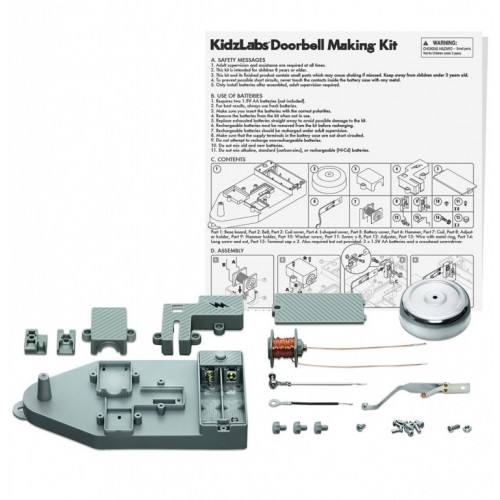 ΠΕΡΙΕΧΟΜΕΝΑ: Κομμάτι 1: Πλάκα βάσης, Κομμάτι 2: Κουδούνι, Κομμάτι 3: Κάλυμμα πηνίου, Κομμάτι 4: Κάλυμμα σχήματος L, Κομμάτι 5: Κάλυμμα θήκης μπαταριών, Κομμάτι 6: Σφυρίο, Κομμάτι 7: Πηνίο, Κομμάτι 8: Στήριγμα ρυθμιστή, Κομμάτι 9: Στήριγμα σφυρίου, Κομμάτι 10: Βίδα με παξιμάδι, Κομμάτι 11: Βίδες x 8, Κομμάτι 12: Ρυθμιστής, Κομμάτι 13: Καλώδιο με μεταλλικό κρίκο, Κομμάτι 14: Μεγάλη βίδα και παξιμάδι, Κομμάτι 15: Καπάκια τερματικού x 3.