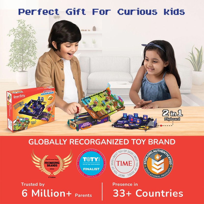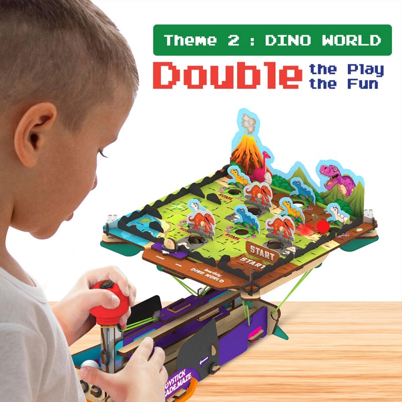 Ζήστε την απόλυτη DIY περιπέτεια με το Joystick Arcade Maze από τη Smartivity! Ένας κοσμικός συνδυασμός διαστημικής οδύσσειας και Jurassic Park δράσης, έτοιμος να κατακτήσει μικρούς εξερευνητές που διψούν για STEAM διασκέδαση! Φανταστείτε τον μικρό σας ήρωα να κατασκευάζει το δικό του διαδραστικό arcade game! Δύο απίθανα game boards σε μία ευρηματική περιστρεφόμενη πλατφόρμα περιμένουν να τον μαγέψουν και να του δώσουν ώθηση στη δημιουργικότητα! Αλλά δεν είναι μόνο παιχνίδι – είναι και ένα μοναδικό ταξίδι στην επιστήμη! Ανακαλύψτε τις αρχές της μόχλευσης και της ελαστικότητας, εξερευνήστε την ισορροπία και ξεκλειδώστε τα μυστικά της βαρύτητας, με τον πιο διασκεδαστικό τρόπο! Με το Joystick Arcade Maze, τα παιδιά σας δεν θα παίξουν απλώς, αλλά θα μάθουν την επιστήμη πίσω από το παιχνίδι, σε μια συναρπαστική συγχώνευση διασκέδασης και γνώσης! Τι θα βρείτε στη συσκευασία: 7 ξύλινες πλάκες υψηλής ποιότητας, 2 θεματικές πίστες (Dino World και Space), oδηγίες με συμβουλευτικά βίντεο, εξαρτήματα όπως λάστιχα και αρθρώσεις . Ενισχύστε τη δημιουργικότητα, τη σκέψη και τις κινητικές δεξιότητες του παιδιού σας μέσα από ένα παιχνίδι που συναρπάζει!