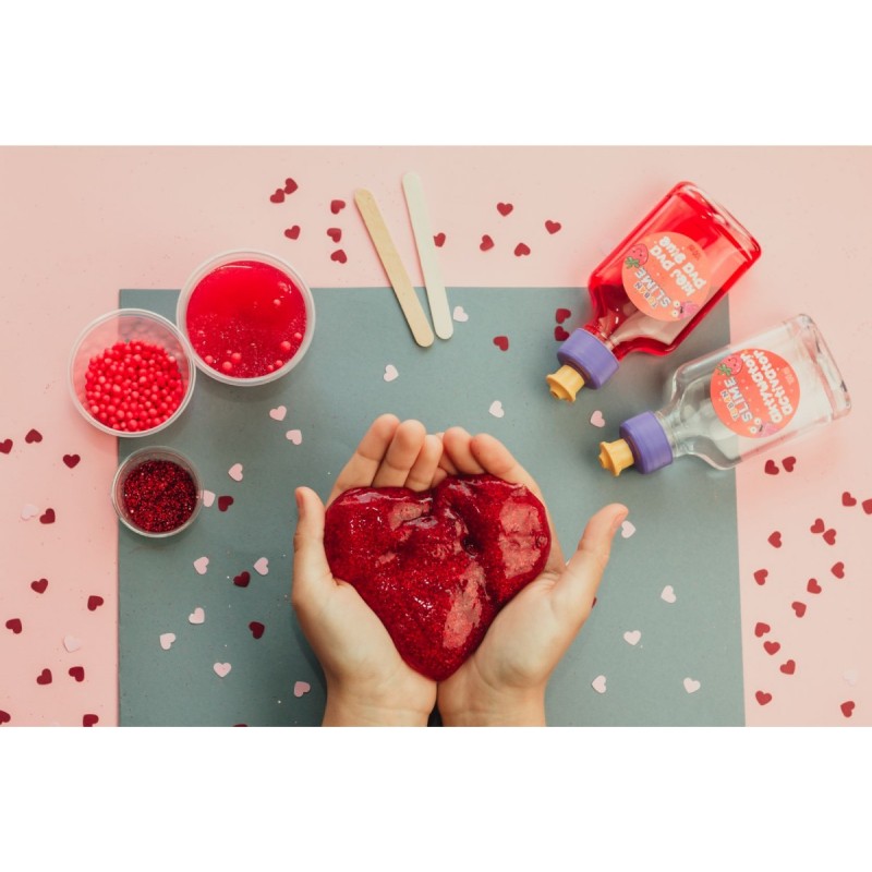 Ένα σετ για την προετοιμασία κόκκινου, γυαλιστερού SLIME με άρωμα φράουλα. Θα το δημιουργήσετε χρησιμοποιώντας την αρωματισμένη κόλλα PVA που περιλαμβάνεται στο σετ, τον ενεργοποιητή και το διακοσμητικό γκλίτερ σε κόκκινο χρώμα. Το μόνο που χρειάζεται είναι να αναμείξετε όλα τα υλικά σύμφωνα με τις οδηγίες της συσκευασίας και το SLIME σας είναι έτοιμο.