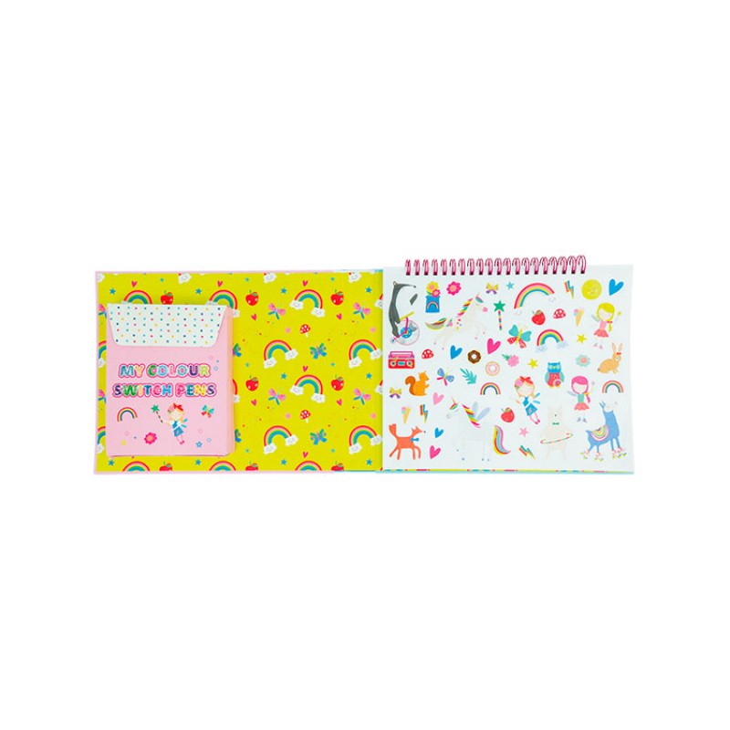 5 έγχρωμες σελίδες, 6 στυλό με διακόπτες χρώματος, 1 μαγικό στυλό, 5
