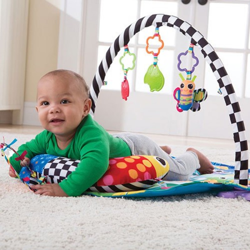 Γυμναστήριο δραστηριοτήτων με μαξιλάρι που παρέχει ασφάλεια και σταθερότητα. Τα όμορφα, έντονα χρώματα προσκαλούν το μωρό να εξερευνήσει και να ανακαλύψει τα τρία αποσπώμενα παιχνίδια. Είναι ιδανική συντροφιά για το κρεβάτι καθώς φωτίζει η κοιλίτσα της Rosie και κρατάει το μωράκι μακριά από τα σκοτάδια. Οι ήχοι κροταλίσματος & τριξίματος αλλά και πολλές διαφορετικές υφές τραβούν την προσοχή του μωρού και μεγαλώνουν την περιέργεια του. Είναι εντελώς ακίνδυνο και στο δάγκωμα καθώς έχει και δυο μασητήρια!
