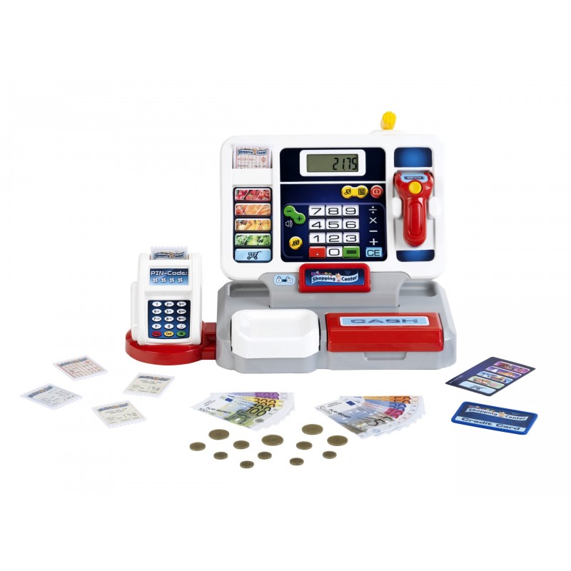 Ταμειακή μηχανή παιχνίδι από την εταιρία Klein με την οποία το παιδί ξεκινά να αναγνωρίζει και να μαθαίνει τι είναι ταμειακή μηχανή πως λειτουργεί και ποιά η χρηστικότητά της. Έτσι εκπαιδευέται σε νέα πράγματα όπως είναι η έννοια των χρημάτων καθώς και σε συμπεριφορικό πλαίσιο σχετικά με τις συναλλαγές. Τέλος αφήνει τον εαυτό του ελεύθερο δημιουργώντας σενάρια και καταστάσεις που καλείται να αντιμετωπίσει το ίδιο και που ενισχύουν την αυτοπεποίθησή του.