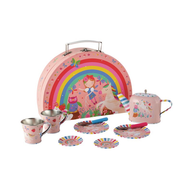 Μία από τις πιο δημοφιλείς μας σειρές, τα παιδιά δεν χορταίνουν τα χαριτωμένα σετ τσαγιού! Πάρτε το τσάι σας καλώντας την νεράιδα του ουράνιου τόξου για ένα απογευματινό τσάι! Το σετ τσαγιού περιέχει μια τσαγιέρα , 1 δίσκο, 2 κουταλάκια, 2 φλιτζάνια με τα πιατάκια τους και 2 πιάτα.