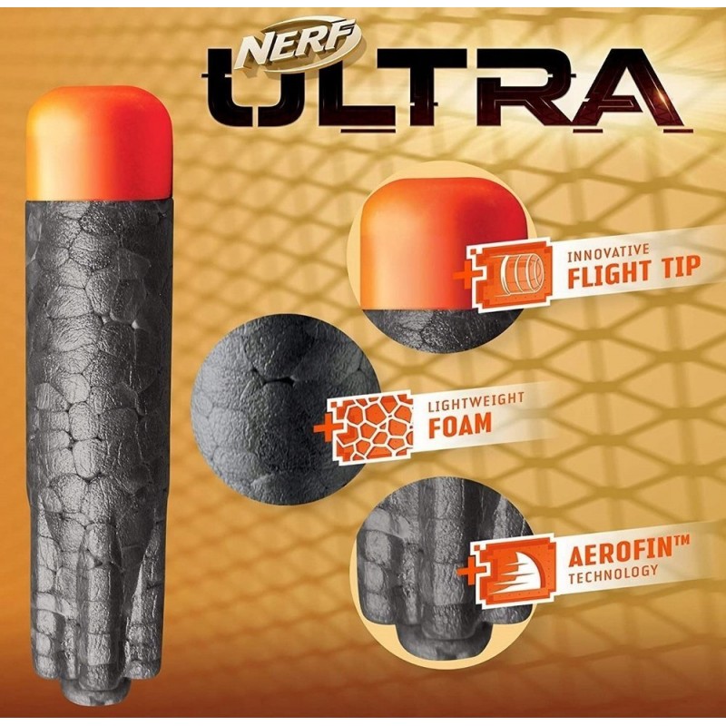 πτήσης, τεχνολογία Aerofin και αφρό Nerf Ultra. Τα βελάκια Nerf Ultra λειτουργούν μόνο με τα blaster Nerf