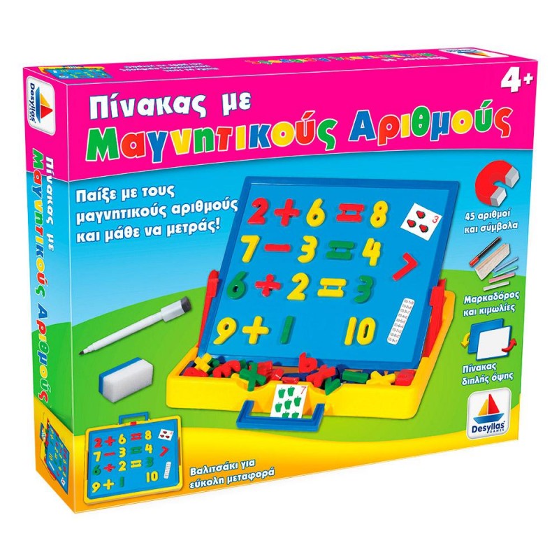 Παίξε με τους μαγνητικούς αριθμούς και μάθε να μετράς! Με τον πίνακα δύο όψεων το παιδί μπορεί να κάνει πράξεις με τους μαγνητικούς αριθμούς, να ζωγραφίσει με τις κιμωλίες να γράψει με τον μαρκαδόρο ή να σβήσει με το σφουγγαράκι. Και όλα αυτά μαζί σε ένα βαλιτσάκι για εύκολη μεταφορά!
