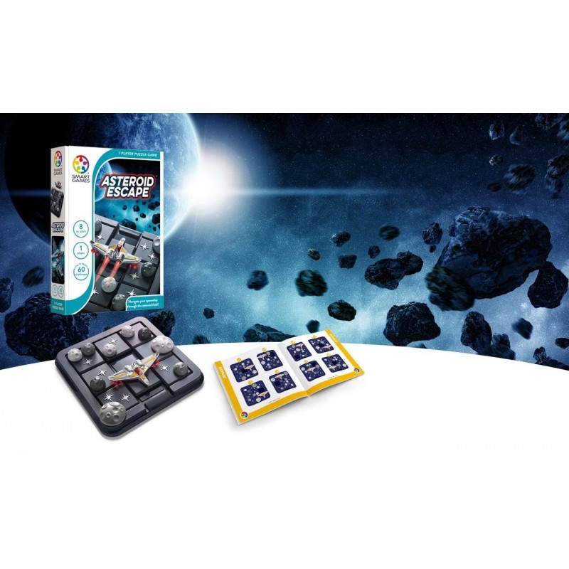Μπορείτε να κατευθείνετε σωστά το διαστημόπλοιο σας ανάμεσα σε αστεροειδείς πέτρες; Οι ικανότητες πτήσης σας θα δοκιμαστούν στα όρια προκειμένου να καταφέρετε να ξεφύγετε! Ένα γαλαξιακό παιχνίδι λογικής με συρόμενα κομμάτια παζλ για 1 παίκτη. Περιλαμβάνεται φυλλάδιο οδηγιών με 60 προκλήσεις κλιμακούμενης δυσκολίας. Κατάλληλο για παιδιά ηλικίας 8 ετών και άνω.