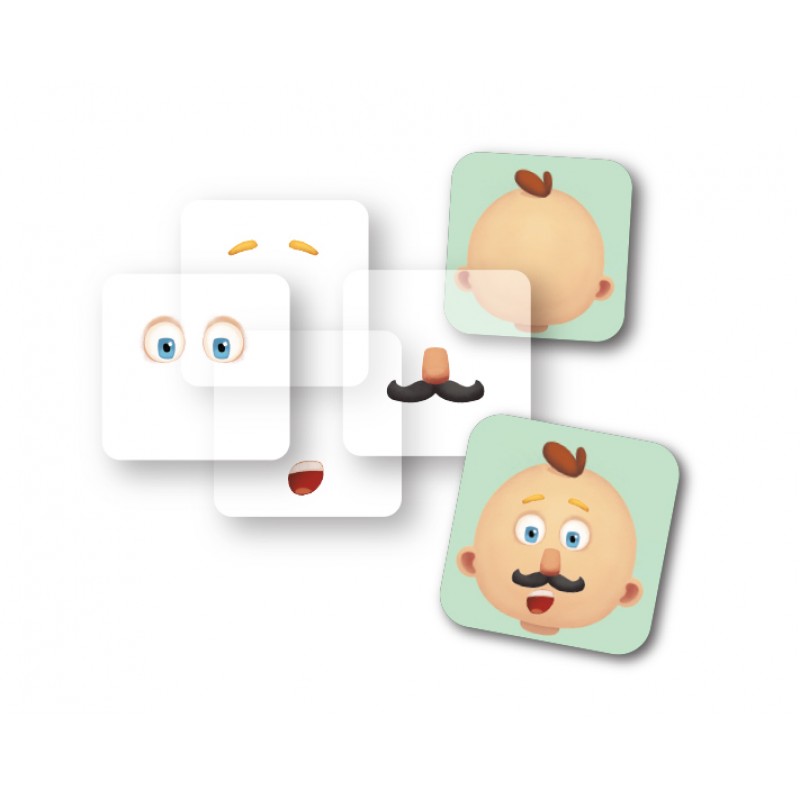 * Συνδύασε διάφανες κάρτες με μέρη του προσώπου και φτιάξε αμέτρητους συναισθηματικούς συνδυασμούς — με έκπληξη, γέλιο ή απορία!