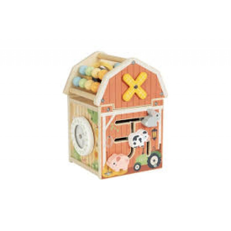 Αυτό το το αγροτόσπιτο περιέχει έναν λαβύρινθο με φιγούρες ζώων (κουνέλι, αγελάδα, γουρούνι) για να παίξουν τα παιδιά. Περιέχει χάντρες μέτρησης σε άβακα με χρώματα (κίτρινο, μπλε, πράσινο και ροδακινί). Ένας καθρέφτης προσθέτει οπτική διέγερση και αισθητηριακή εξερεύνηση.