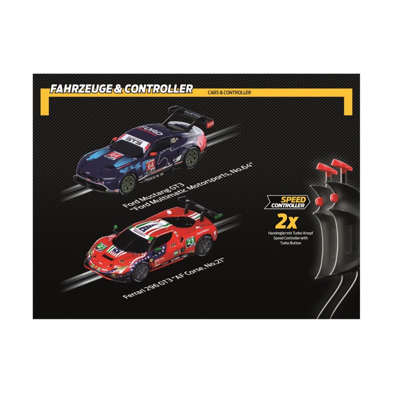 Ζήστε την αδρεναλίνη των αγώνων GT με το Carrera GO!!! GT Powerplay Racing Circuit, ένα αναλογικό σετ αυτοκινήτων 1:43 κατάλληλο για παιδιά 6 ετών και άνω. Το σετ περιλαμβάνει δύο λεπτομερή GT3 αγωνιστικά οχήματα και πίστα μήκους 4,9 μέτρων με δυναμικά στοιχεία για συναρπαστικούς αγώνες δύο παικτών.