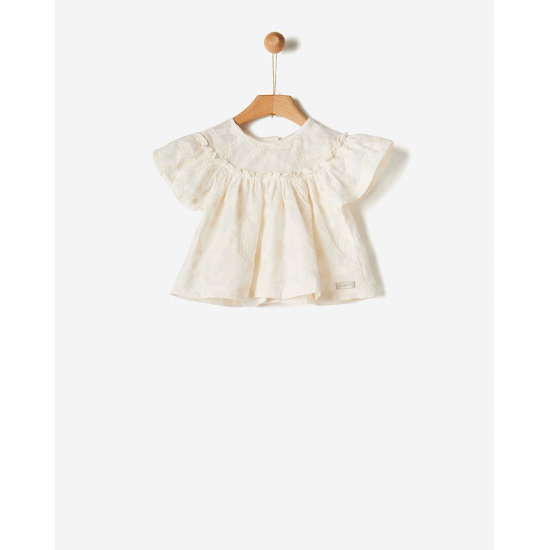 Εκρού Buttercream μπλούζα από κεντημένο πολυτελές ανάγλυφο ύφασμα, 100% βαμβακερό. Με φερμουάρ στην πλάτη για άνεση στην εφαρμογή.