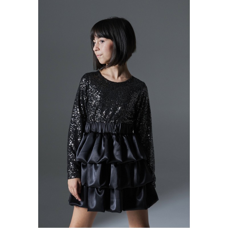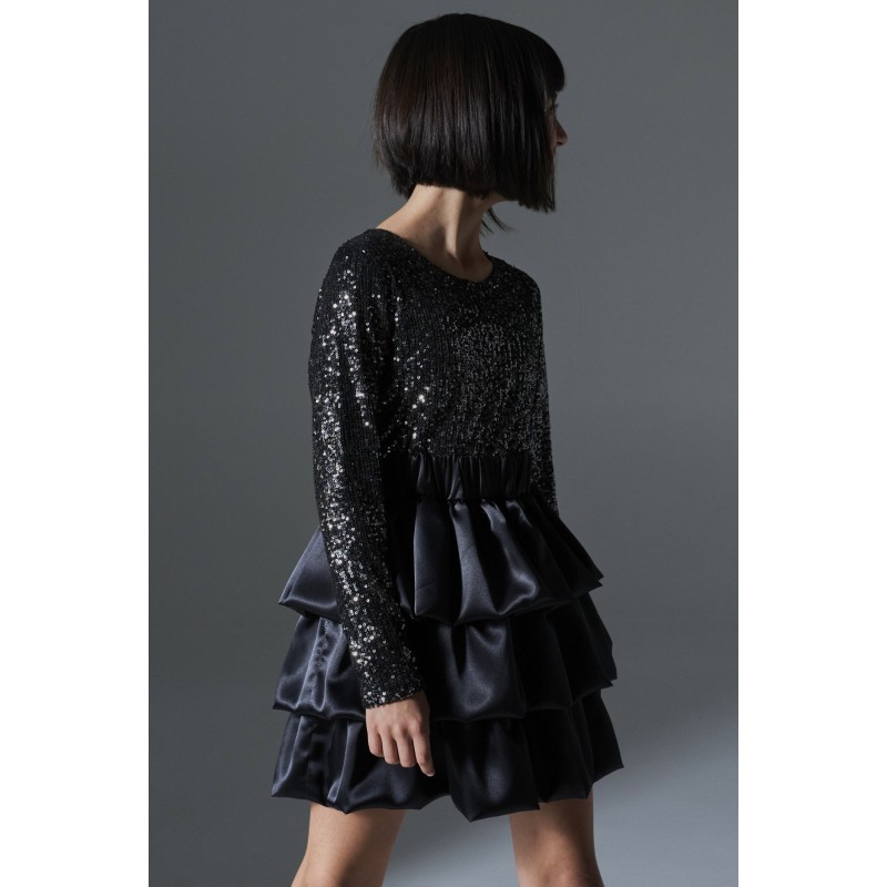 Φόρεμα Παγέτα με Φούστα Σατέν με Βολάν Μαύρο (MRW26-1220)