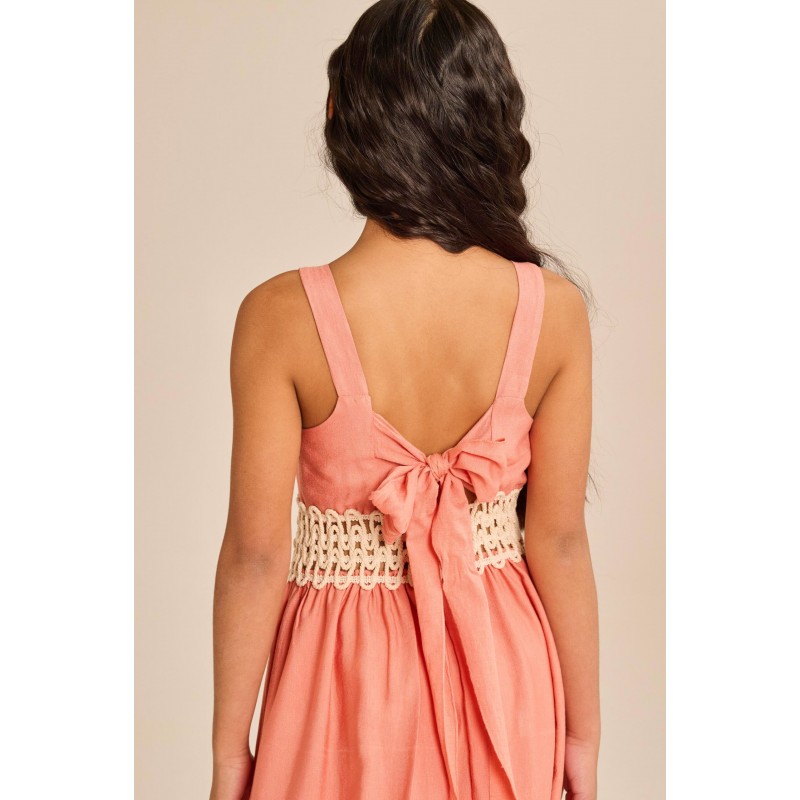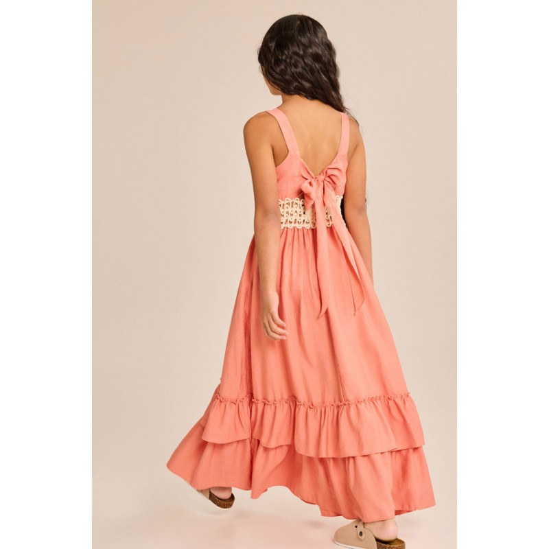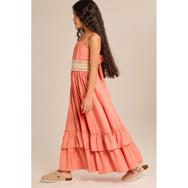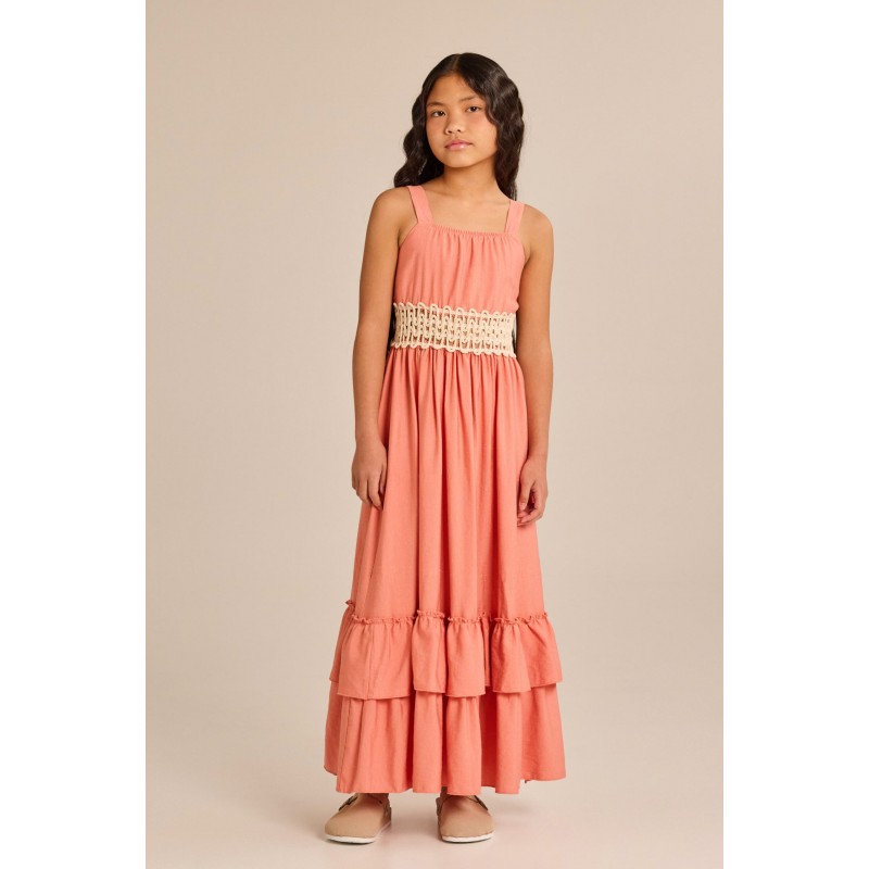 Melin Rose Φόρεμα Μακρύ Apricot Με Πλεκτή Λεπτομέρεια (MRS25-1200)