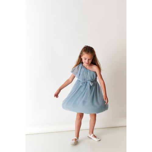 Two In A Castle Φόρεμα με ένα Ώμο Dusty Pastel Light Blue (T5202)