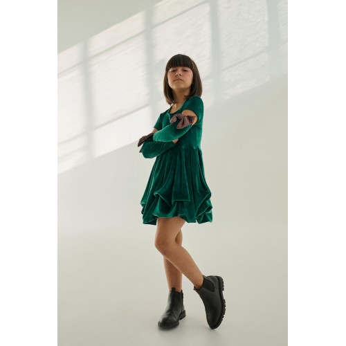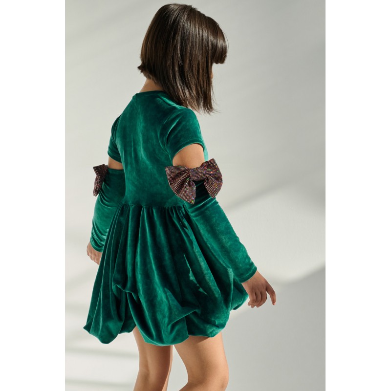 Melin Rose Φόρεμα Βελούδο με Φιόγκους Κυπαρισσί (MRW25-1194)