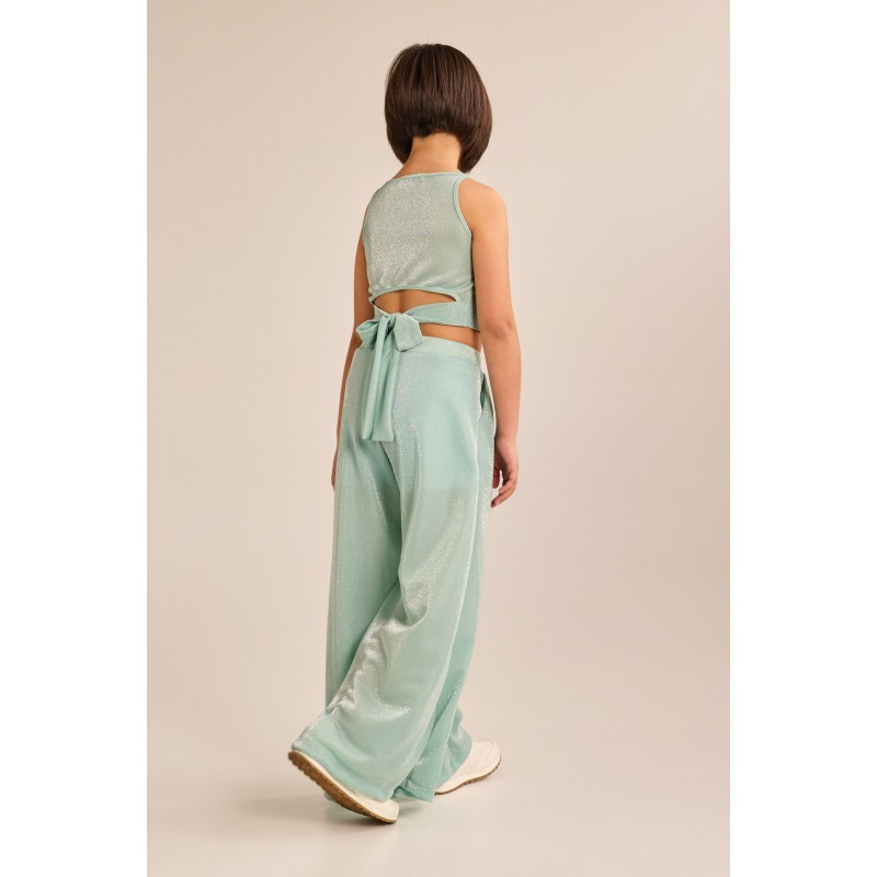 Melin Rose Σετ Μπλούζα με Παντελόνα σε Γυαλιστερό Ύφασμα Μέντα (MRS25-6184)