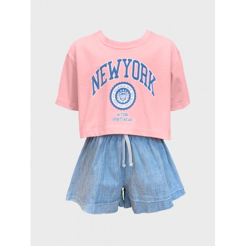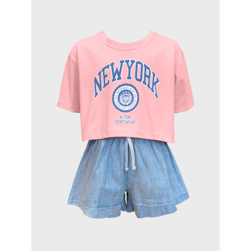 Σετ Σορτς Φούστα με Τοπ New York Ροζ (22530026)