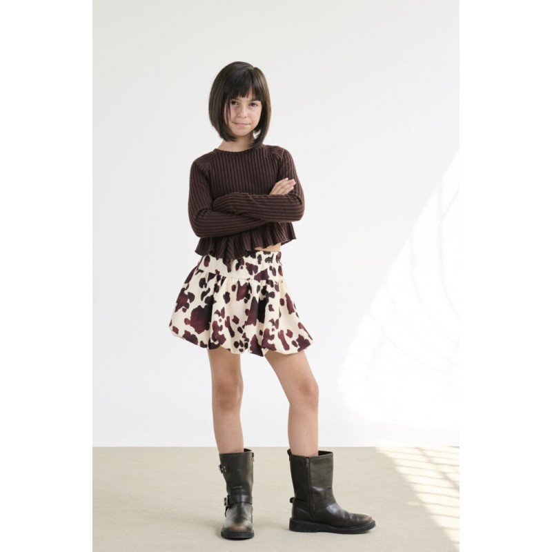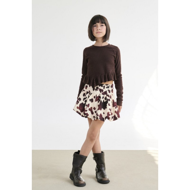 Melin Rose Μπλούζα Ριμπ με Βολάν στο Τελείωμα Καφέ (MRW26-0429)