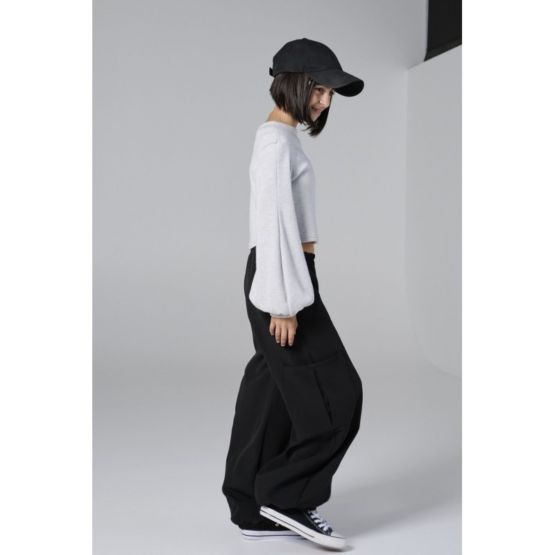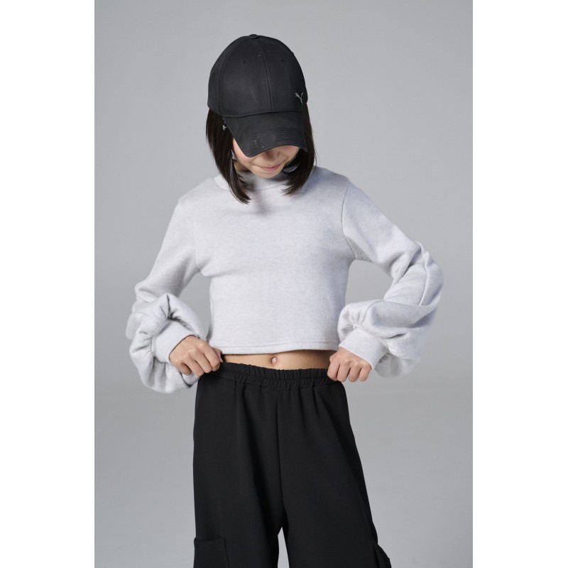 Melin Rose Μαλακή πλεκτή μπλούζα σε ανοιχτό γκρι, με μοντέρνα cropped γραμμή και εντυπωσιακά balloon μανίκια για άνεση και στυλ κάθε μέρα.