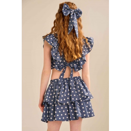 Σετ που αποτελείται από ένα τοπ και μία φούστα σε μπλε χρώμα με λευκές πουά λεπτομέρειες.